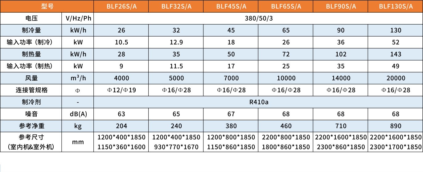 Această unitate are un design de tip split, cu un dulap interior pe podea și o unitate exterioară compusă din unul sau mai multe module exterioare. Este disponibil în două modele principale: răcire unică și răcire și încălzire. Modelul de racire si incalzire poate fi echipat optional cu incalzire electrica auxiliara. Având performanțe superioare, zgomot redus, instalare ușoară și funcționare fiabilă, toate unitățile pot fi, de asemenea, conectate la un sistem de monitorizare de la distanță cu funcții de detectare automată a defecțiunilor și alarmă.